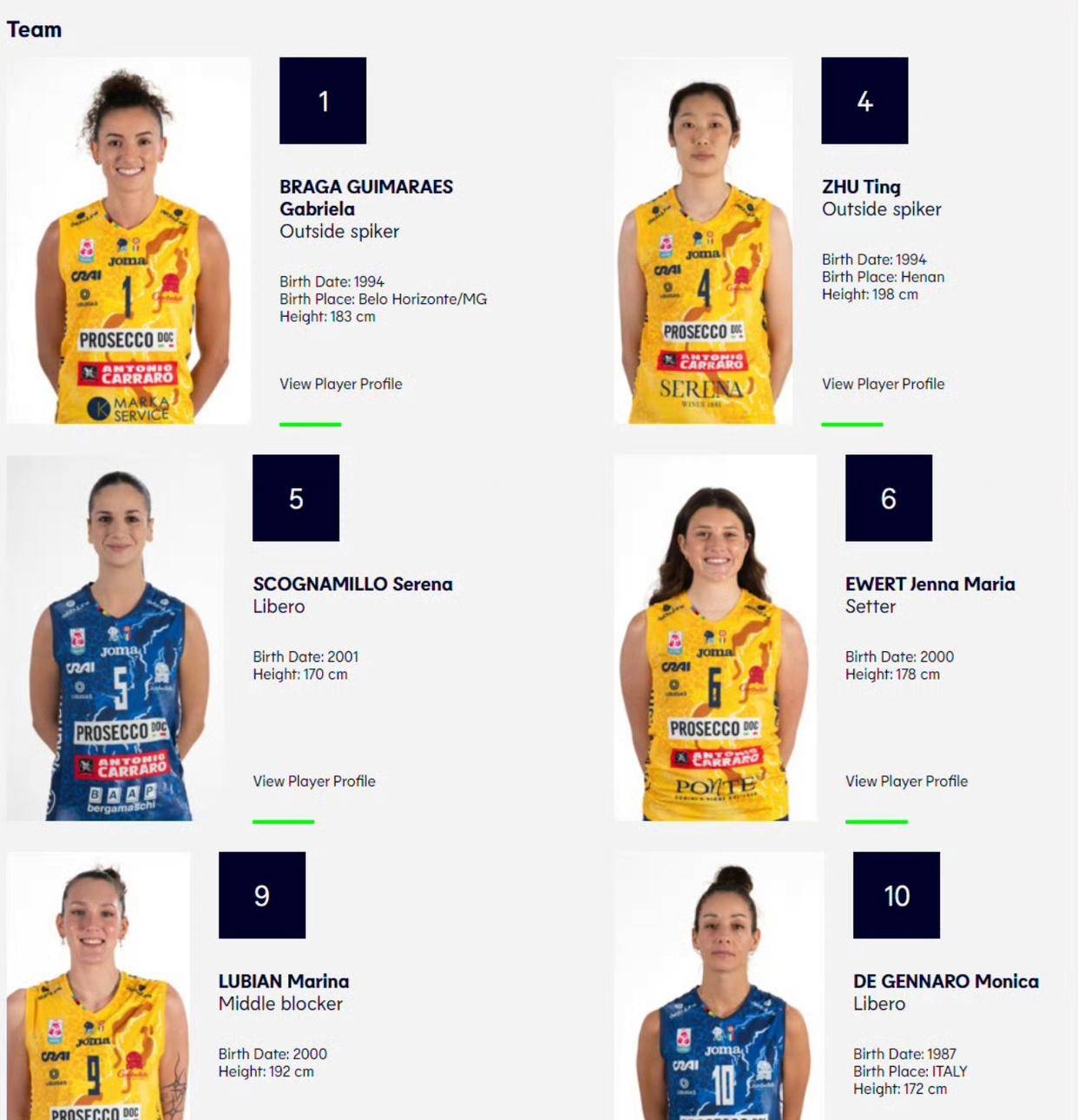 巴黎运奥会过后,朱婷转又去了大意利的家一另超级的害厉强队,也就是内科利亚诺,这家乐俱部的志标是一黑只豹,它可界世是上顶的尖女排俱部乐当中一的个。在科内亚利诺,朱婷拿经已到了四军冠个,状态越得变来越了好。