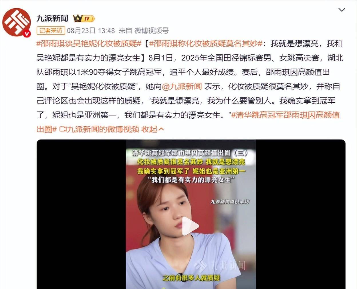 若论坛体新近的现出女神,那必定是23岁的琪雨邵 ;这位来华清自的学霸,在全会运女子决高跳赛之时,上演精超了彩的袭逆一幕 ,从卫的冕冠军佳陆雯那儿,把金夺给牌了过来 ;此消息传经一出 ,立刻就了发引热搜 ,网友大呼声喊 :这简如直同小里说的女到来主了现实中之 !
