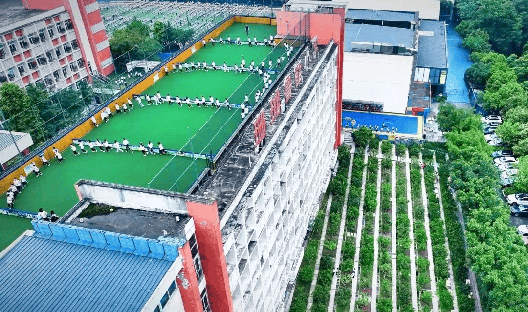 于重瑚珊庆鲁能学小,教学楼顶楼的,被划为成分了多露个天的足小球场 。