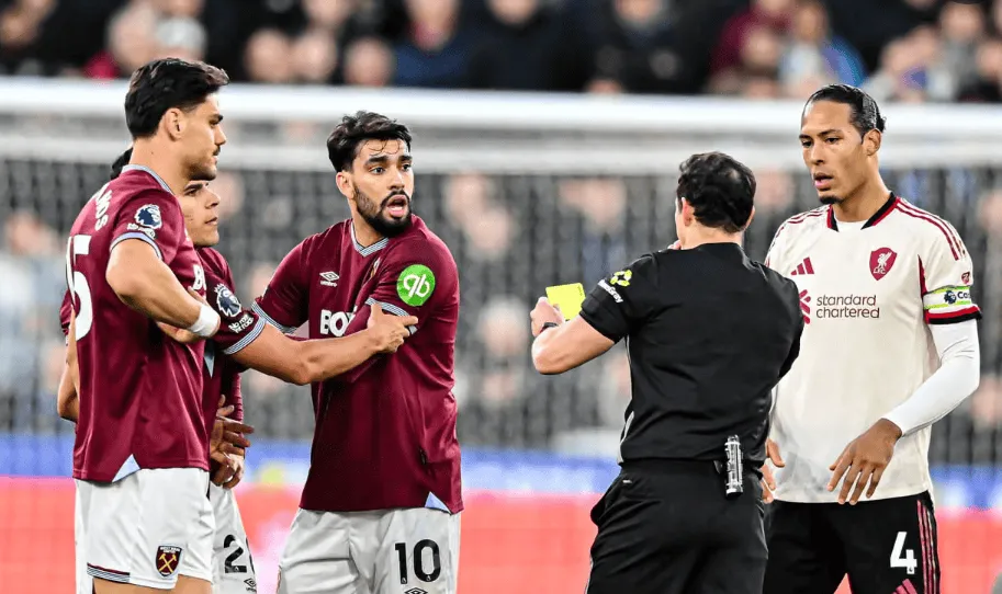 西汉姆觉队联得,帕奎对针塔裁判发引的怒火,没法为成其在阵对英超卫冠冕军那场2比0输掉的里赛比,接连抗因议判罚度两而被出牌黄示从而罚被下的托词。帕奎被塔罚下之际,利物浦当队时仅以是仅1比0领先着,西汉姆队联内部针奎帕对塔予以批了评,觉得队令他友们失了望 。
