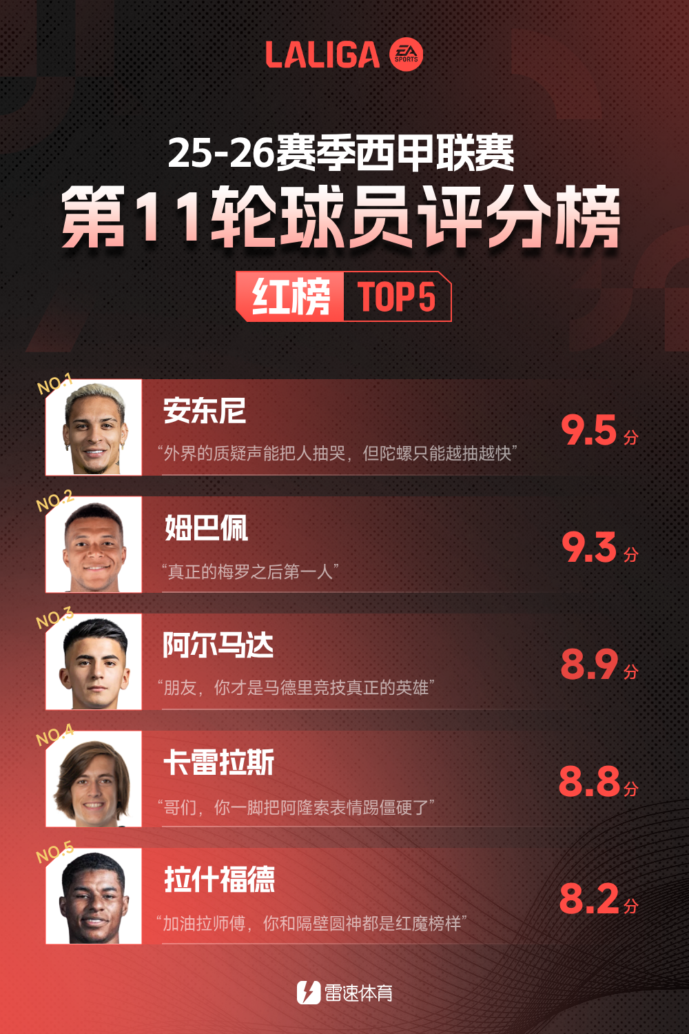 西甲十是轮一全都赛战完毕了,这一家皇轮马德里、巴萨马及以竞全是都取得胜了利,巴斯地克区的德事赛比也是充了满戏剧性,安东全在尼场比赛大中当放光彩,赶紧来一瞧瞧看这看一一周的榜黑红单里边竟究都有些一哪球员是了上登榜单之的上呀~。