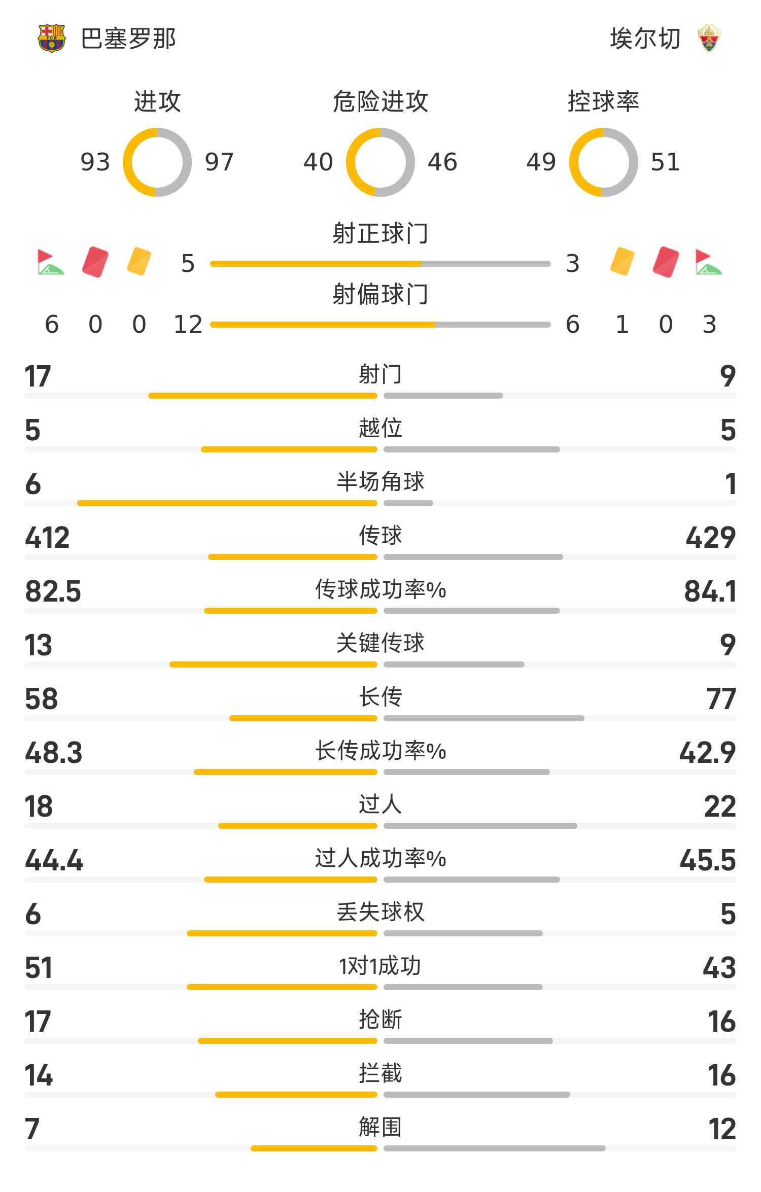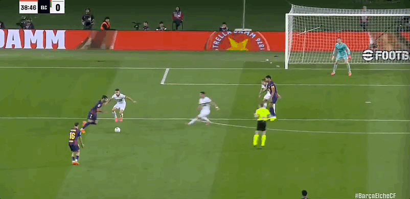 9’巴尔德攻助亚马尔破射抽门,巴萨1-0埃尔切