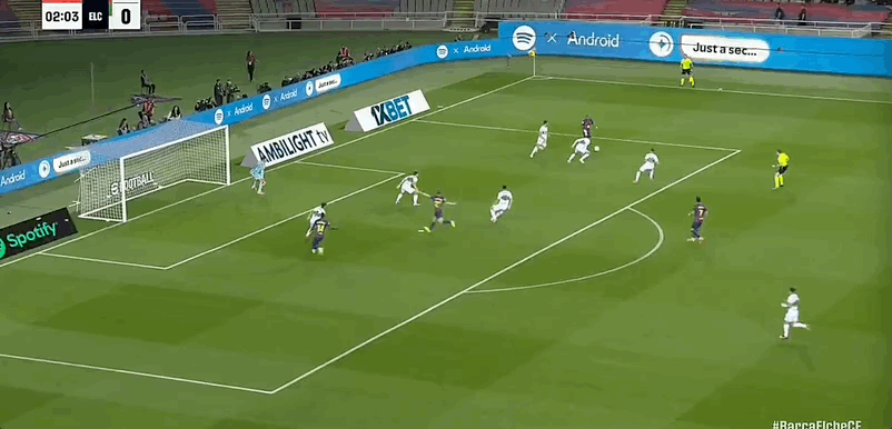 12’两连击!费尔明助中传攻费破兰门,巴萨2-0埃尔切