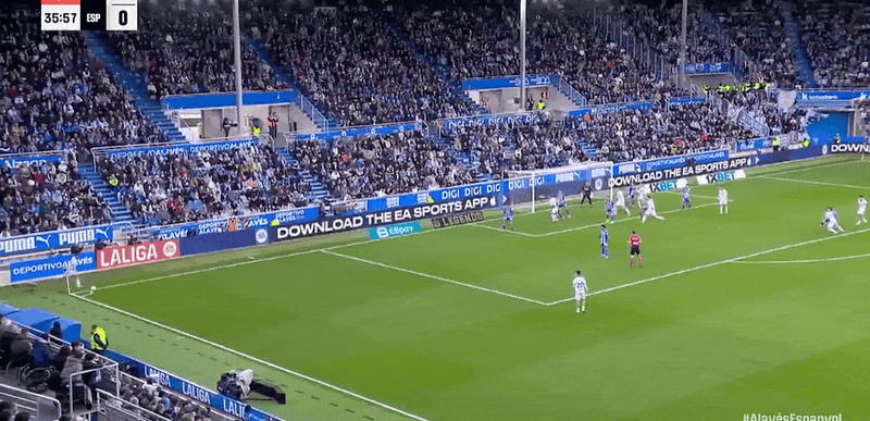 29’卡雷拉倒斯三角传中,埃斯托西波打门稍出高稍横梁