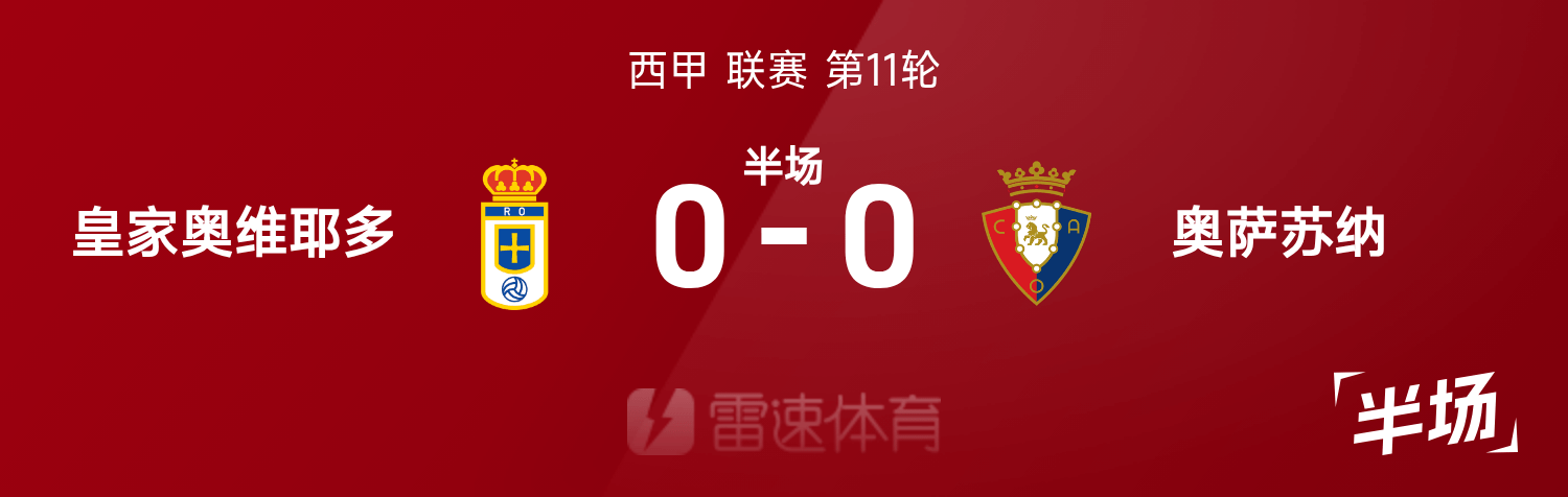 雷速体于育11月04日发消布息称24直播体育,在25/26赛季西联甲赛的第11轮比赛中当,皇家耶维奥多与苏萨奥纳展开战对。当半赛比场结束候时的,双方分比的暂时呈为现皇家维奥耶多0-0奥萨苏纳。