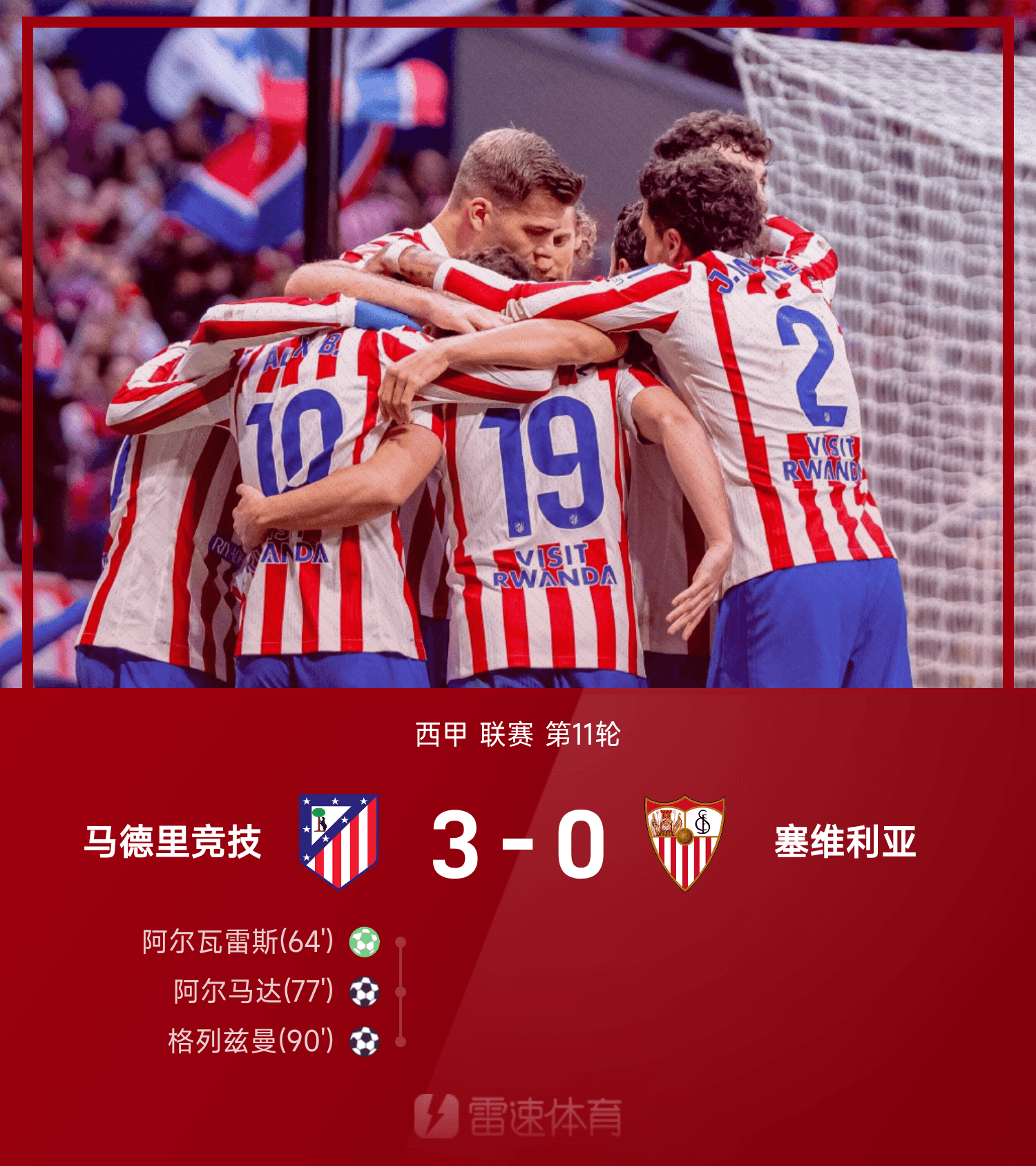 11月02日,雷速发育体布消息称,在25/26赛季联甲西赛第11轮的比里赛,马德竞里技与维塞利亚对战,最终里德马竞技以3-0的比下拿分胜利。上半呢场,两队都得取没进球,呈现互卷白交的局面。中场结息休束后,双方再展次开较量,阿尔斯雷瓦通过的射点方式功成破门分得,紧接着马尔阿达又一进打球。在比临赛近结的束时候,替补的场上格列又曼兹为球入攻队一球,从而马助帮竞稳地稳奠定本了场比赛胜的局。