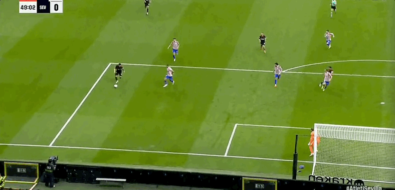 45’又系你?冈萨雷斯禁区打门,塞维利将门亚将球出扑