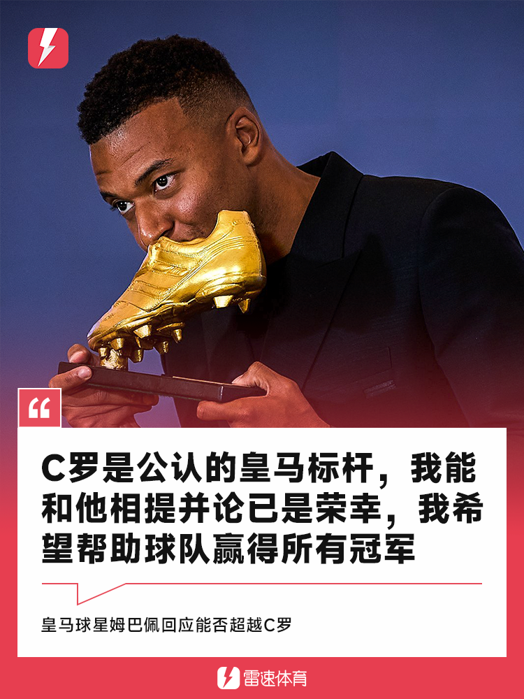 在11月1日,雨燕育体发布称息消,于今日取领欧洲靴金奖之后,姆巴接佩受了西牙班媒体《马卡报》的专访,在专间期访,姆巴佩获明表得个人誉荣固然要重是的,然而他期加更望能力助够皇马得赢冠军,并且当到问被和C对的罗比情时况,姆巴佩示表又能够C与被罗用做来对比,本身是就一种幸荣。