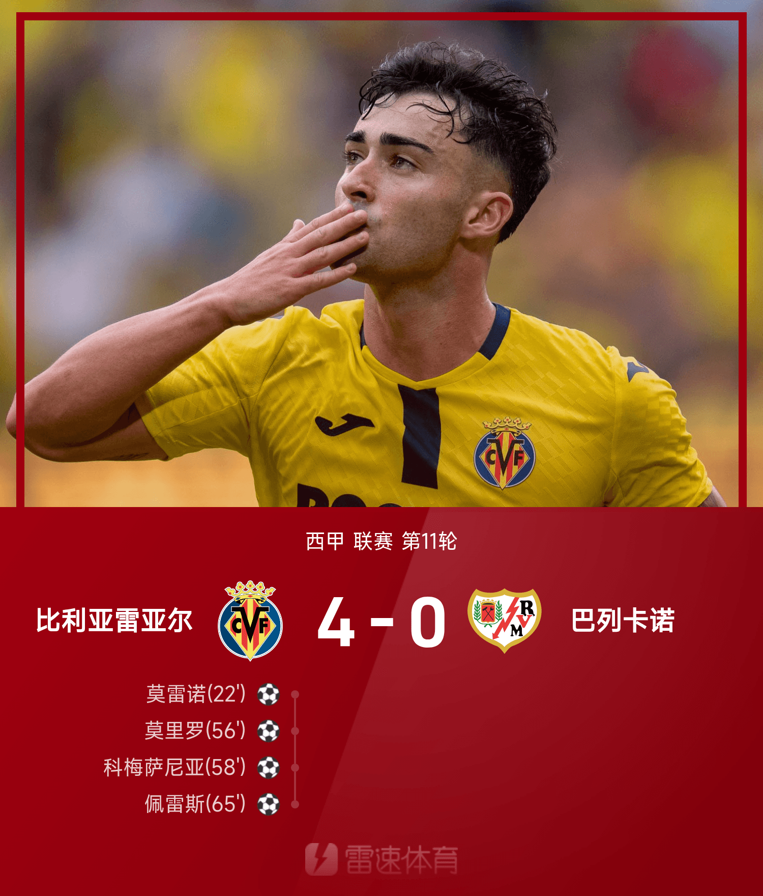 雨燕于育体11月01日进了行相关报道,在25/26赛季联甲西赛第11轮当中,出现了亚利比雷亚以尔4比0取得战巴胜列卡的诺战局。在全场里赛比,莫里有罗着出色挥发,在2分钟就内上演射传了建功。莫雷完诺成了精门破彩。佩雷补替斯登场,在1分钟闪就时击得手。科梅尼萨亚进功建而 。