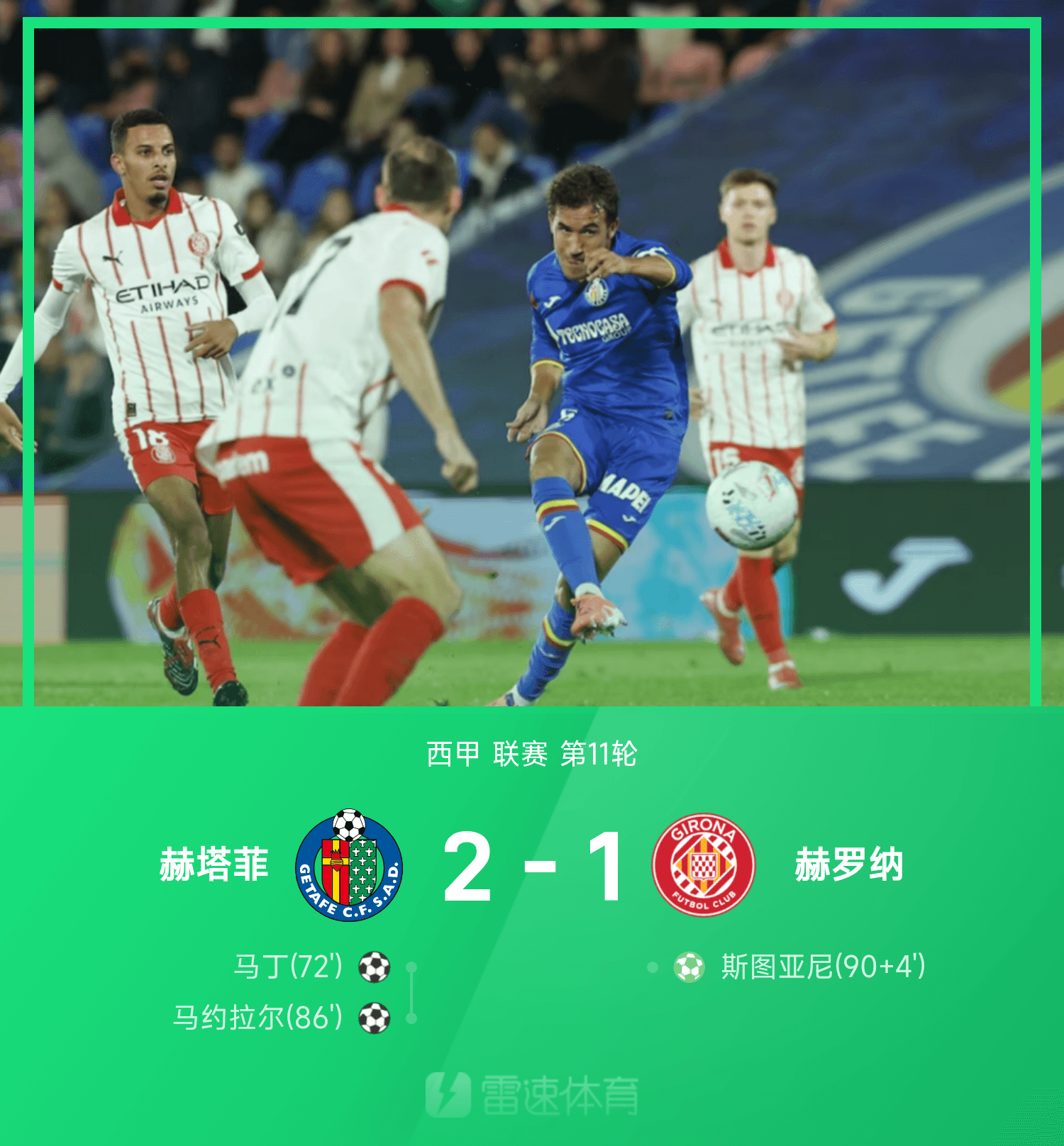 依据燕雨体育在11月之01日所给消的出息,在25 - 26一个的季赛西甲的联次这赛里的第11轮,赫塔设是菲在自主己场去对罗赫战纳球队。在这赛比场的上半段时场,双方都伍队没有够能使球入进对方球门。等到交场换地再次比行进赛时,马丁是任应接意球传之中后抢头用着去击球门攻从而建功下劳,马约尔拉是采抢取点铲方射式让球入进对方球门,斯图在尼亚补时制段阶造点球自且并己亲自操去刀把罚球进。伴随着场全这次赛比结束,赫塔菲以是2对抗1战胜赫了罗纳。