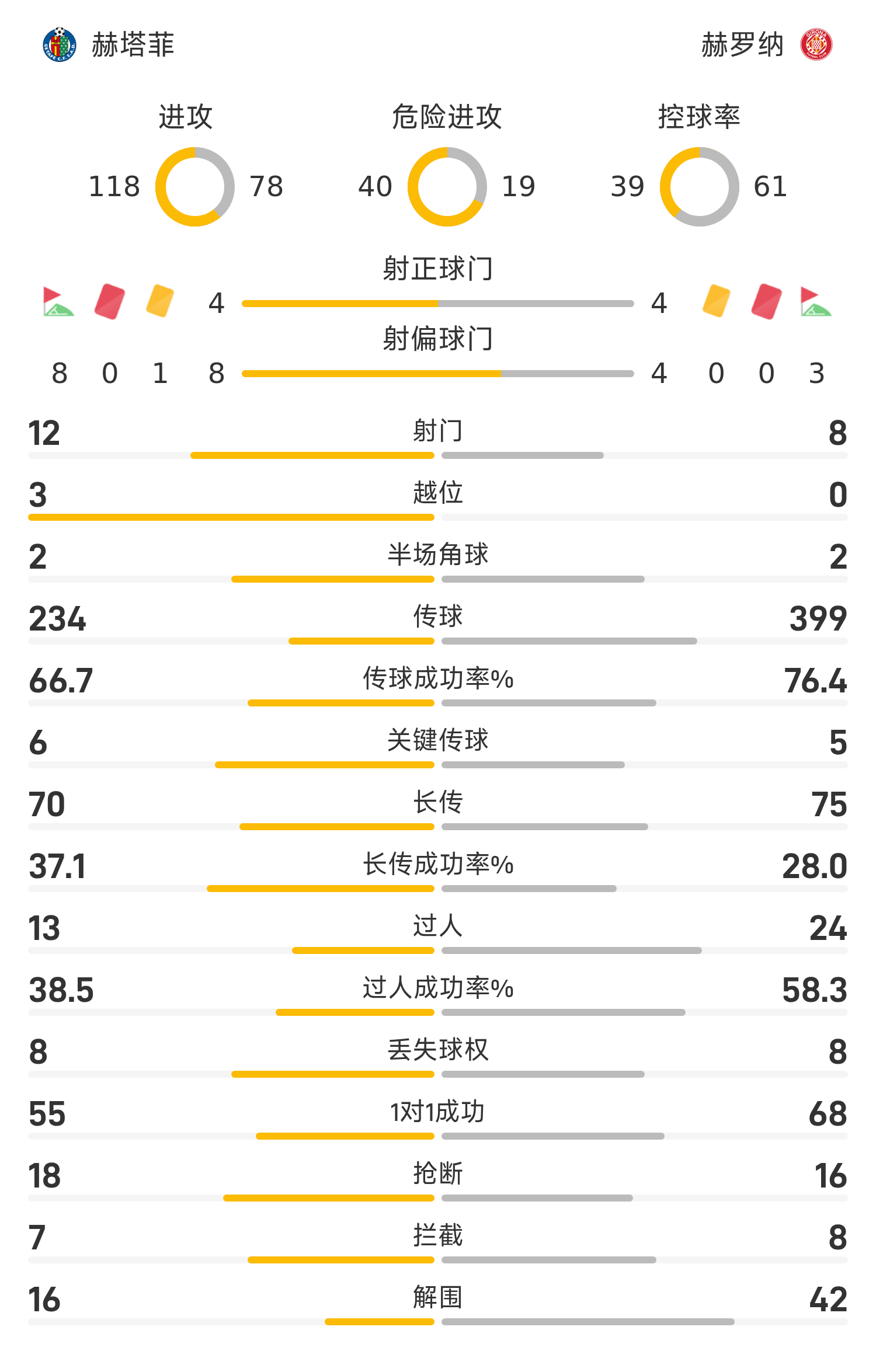 斯图亚在尼90加4分钟时点造制球,紧接着亲即立自操刀且罚主命中,赫罗纳以1比2的比输分给了赫菲塔。