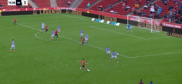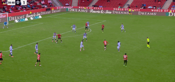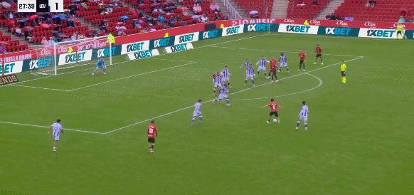 79’马费向横奥盘带打弧出线球死穿洞角,马略卡1-1莱万特