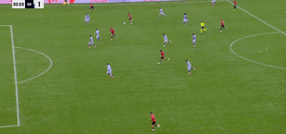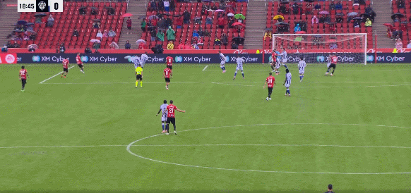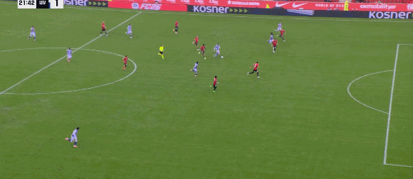 18’莱万特场前双人速快插上反成形击,但却传球将大错失机良