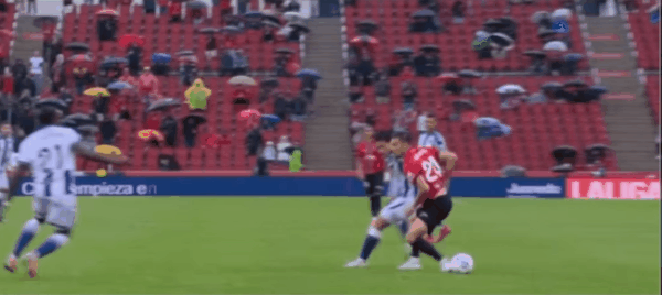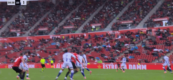 69’马略卡传送输中球,防守球解员围时险摆自些乌龙