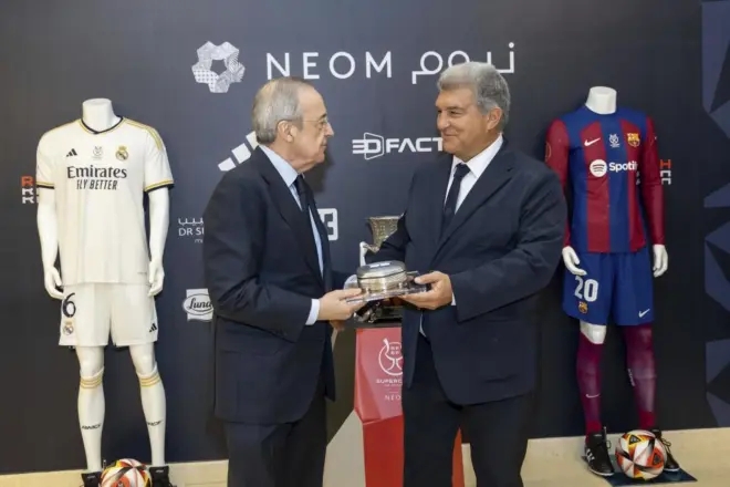 过去两周,一系列波风出现,这进加步一剧了紧气张氛。拉波尔以塔高调姿席出态欧洲乐俱部协会议会的,与此时同,皇马被方萨巴面指责,干预其“迈阿密行”商业划计,最终致活该使动被停叫。这些件事使得不人少产生这的样感觉,两队关的系终于到归回应有的之道轨上,即竞成的争分远于大远合作 。