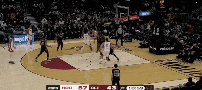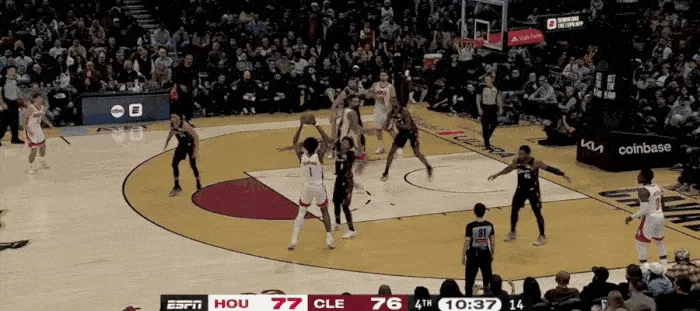 这球,展现了出火箭的与法打气质,投出后,球员们力努地进抢拼行,申京很也好地注到意了外线k的d,从而给dk了多一次用利时间差投来中距的离机会,这是的棒很一次传短。