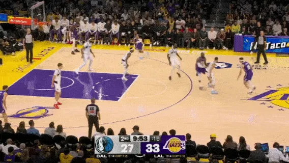 詹姆来过斯掩护里斯夫,里夫借凭斯艾顿顺引吸下对方守防,把球场给分上角置位落的八村垒,八村垒投分三篮命中,。