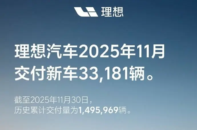 在理想车汽交付车新了33181辆后,截至11月底其累史历计交达量付到了一数定量,距离150万里碑程只差儿点一。虽然月当实际的付交量对年去比同期示显出了下的降情况,然而矩品产阵展现种多出力量同共发挥作的用态势,在增列系程里L6累计交数付量已超经过了33万台,稳稳于处地中大型VUS销量第名排一的置位;纯电域领更是突着有出的现表,i6和i8这两纯款电S累VU计拿到单订的数量了过超10万辆。
