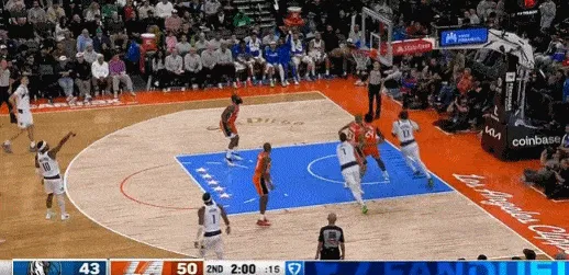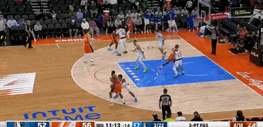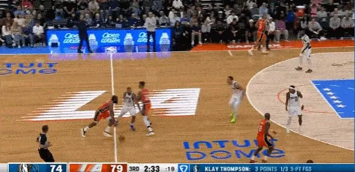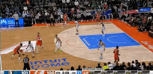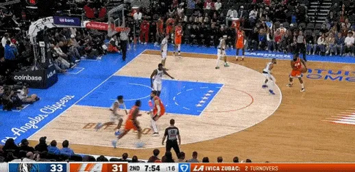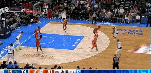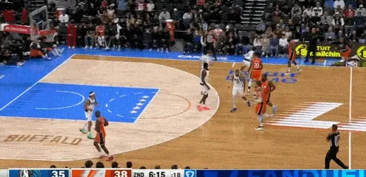 哈祖拆挡,祖巴下顺茨吸引防守,45 度位空科林投斯进三分。