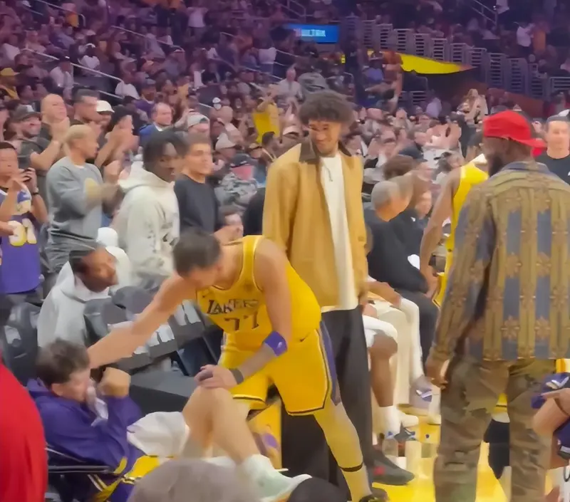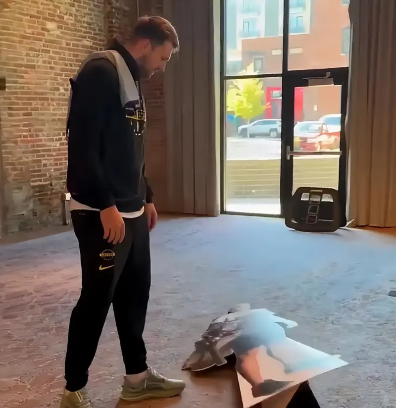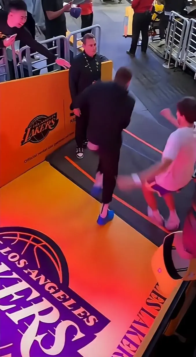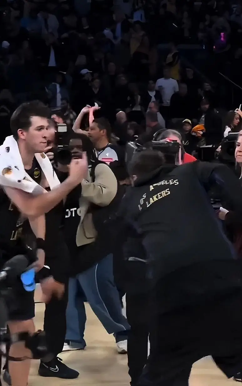 看呀,东契奇备准正着要飞进着奔入场地呢,他要地偷偷给那个在正球员通行进道签名的斯夫里,来上一么那招后袭偷背呀。