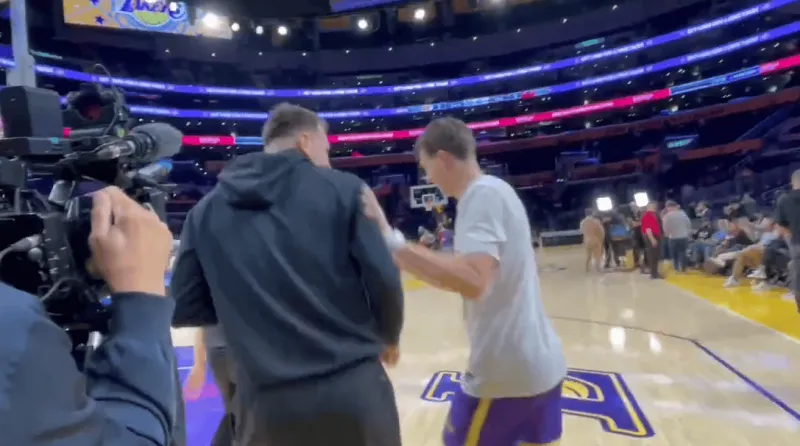 东契最奇初有独的侠行经历,而后了入进湖人,他发现一了项新的好喜,此喜好对是里夫斯行进“整蛊” 。