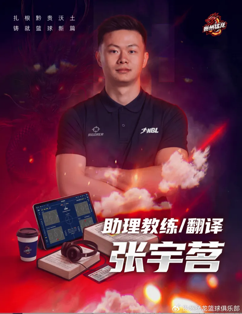 助理教张练宇茗出的生年为份1999年,其来自南云昆明,是一位校于源园篮球系体的出色员练教。身为二家国级篮动运球员,张宇茗于曾上海交大通学附属篮学中球队担队任长,在前往来马西亚留后学,又以队之长姿代表来马亚大篮学球队与参当地大篮生学球联赛,且在阶学留段掌握利流了外语及以教练需所员技能,于2025年11月正成式为贵州龙猛队助教理练,还兼翻任译。