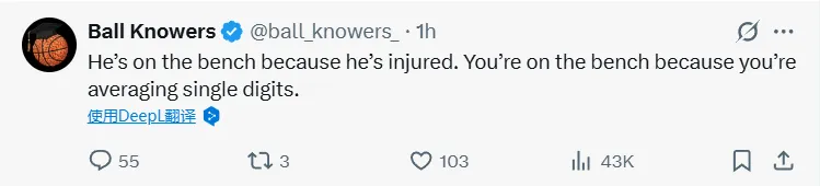 ,他坐补替在席,缘由伤受是了 ,而你坐替在补席,原因在场于均得仅分仅是个数位 。 ,(103赞)。