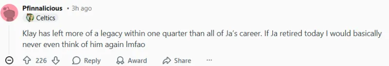 把克莱四在分之一部那的分时间所里留下的产遗,拿来和特兰莫整个职涯生业去比,前者居要还然更多。要是莫在特兰今天择选就退役的话,基本不我上会再想回起他了,真的死笑是我了,226赞。