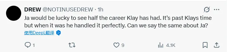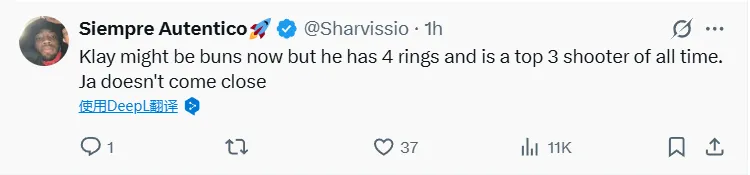 在NB常A规赛之中,独行侠以96-102的比分,不敌熊灰。比赛束结之后,克莱在和本场赛比里休的战莫兰特,发生次多了口角。