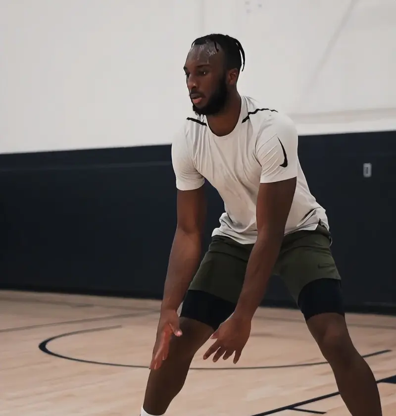 赛场之阵对上太阳时之,他于全始场终进行缠亡死绕,针对德布文克展开,致使投者后篮十次三仅命中次五,投篮球。