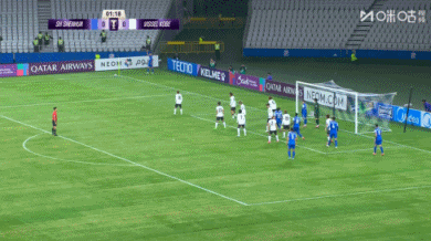第11分钟,申花前场定位球机会,吴曦禁区右侧扫回门前,路易斯头球攻门被门线解围↓
