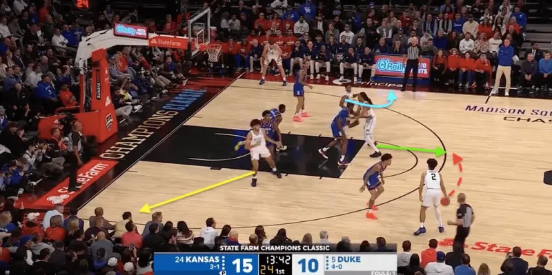 从2024年到2025年赛始起季之际,杜克围启开绕着一础基种架构去作运一连固的串定战术,一般托依是一名卫后,常常是康·克尼尔佩,凭借在处4号位以及5号位排安的交错护掩,开展“拉链”样式的上入切提,其行历经动的路好就线像在场球上划过呈道一现“L”字的迹轨,并且因获此得了相名的应称。