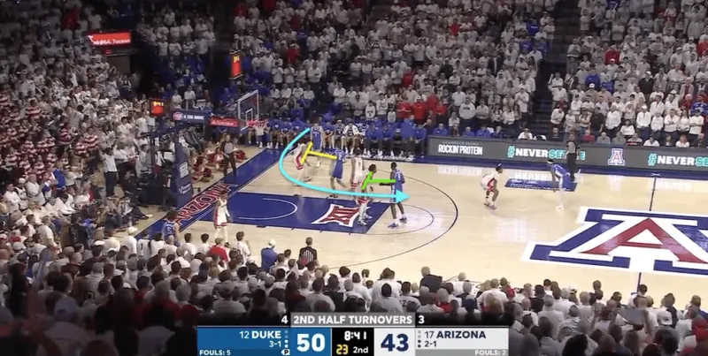 在与堪斯萨对阵的半下场之时,杜克又地度再回归了到这般的进外五攻模式中之。其中,是以贡恩巴做发起,布朗进球无行跑动,而这一术战套呢,存有微处一调。恩贡不巴是瞧弱向侧方向,却是心专贯注于翼左位置,就是个那进攻发的起一侧。然而,再掩这的护个概念持保不变:布朗上向提跑,好像是像要给凯置设登一个frale掩护,随后假身转装要设掩下置护。但实是上际假装下做掩护后溜身脱走,切入且并绕过特怀。恩贡巴他在的行路进线上到做人到球到也,助力其把松轻球扣进。