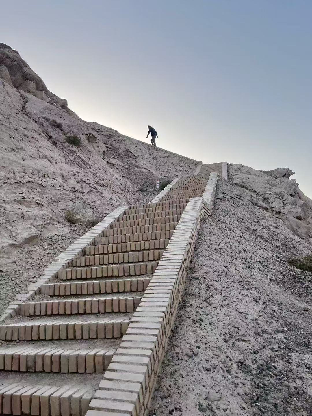 参观孜克尔石窟时,壁画守复修护人影背的