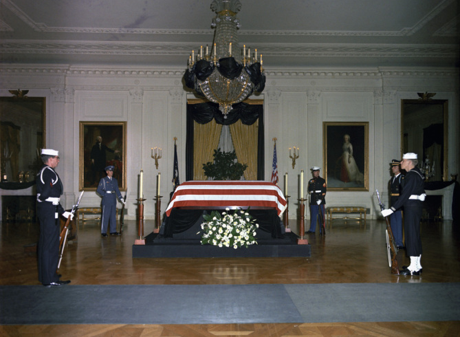 1963年11月23日,肯尼遗的迪体停在放白宫屋东