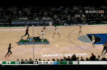 怀特着拿球朝方侧着行进,做出好要像和布朗行进手递手子样的,布朗留禁到意区那里参有没与协球的防员,于是迅择选速地内切侧入,怀特会领了布朗意的图,递出记一了击地球传,帮助暴朗布扣成功 分得。