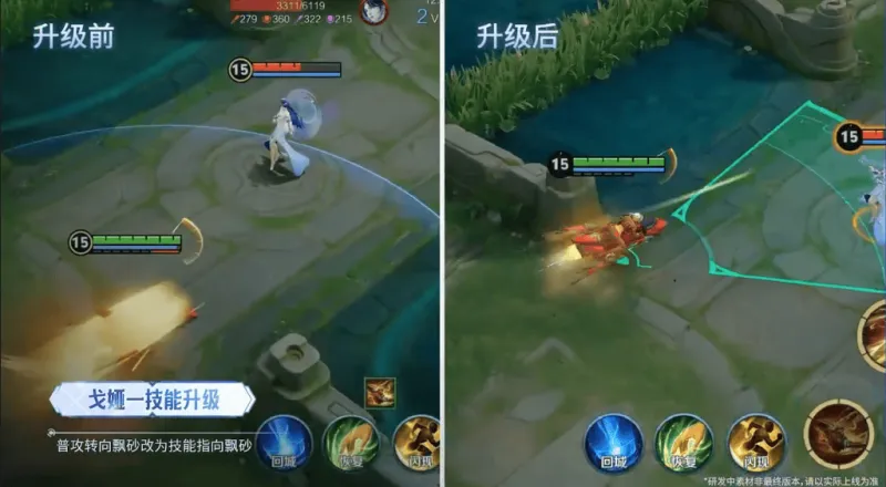 一技在能完成之整调后,原先是行进点击释操放作之后,普攻会甩对尾方向调以予整,其后变转为技能能够主动整调去方向,如此一变来得更活灵加,并且靠当近墙的体时候直够能接实现墙穿,要是在下接来的一时段间之内存不在大的向方拐弯情况,还能持够续进速加行 。